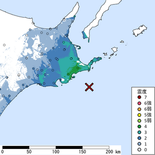 M 5.1 震源地:釧路沖 2025/10/22 18:17頃発生 最大計測震度...