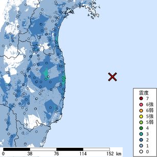 M 4.8 震源地:福島県沖 2025/10/24 06:09頃発生 最大計測震...