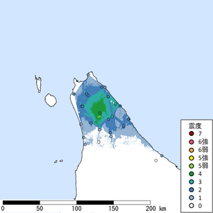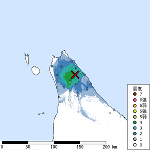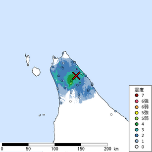 M 4.7 震源地:宗谷地方南部 2026/01/28 15:34頃発生 最大計...
