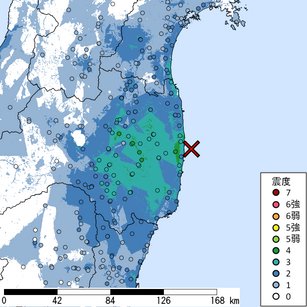 M 6.0 震源地:三陸沖 2026/03/08 22:17頃発生 最大計測震度...