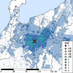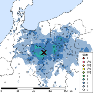 M 5.2 震源地:岐阜県飛騨地方 2026/01/15 14:48頃発生 最大計測震度3.4 WMS:http://www.j-...