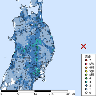 M 6.2 震源地:三陸沖 2025/11/10 16:23頃発生 最大計測震度3.3