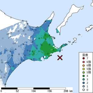 [J-RISQ] 2025/12/02 19:08:01 発表(Ver.7) 2025.12.02地震情報 M 5.2 震源地:根室半島南東沖 2025/12/02 19:03頃発生 最大計測震度4.2 WMS:http://www.j-risq.bosai.go.jp/report/wms?triggerid=R-20251202190321&report=0067&ana=00001&service=WMS&version=1.1.1&request=getcapabilities 推定震度分布: J-RISQ 地震速報 トップへ 地震情報