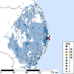 M 4.8 震源地:福島県沖 2025/10/24 06:09頃発生 最大計測震度3.4 WMS:http://www.j-ris...