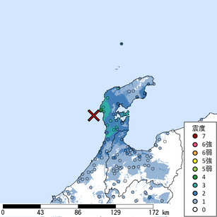 M 4.9 震源地:能登半島沖 2025/12/14 23:26頃発生 最大計測震度3.8 WMS:http://www.j-ri...