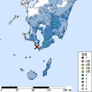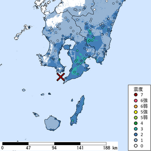 M 5.4 震源地:薩摩半島西方沖 2026/03/01 18:00頃発生 最大計測震度3.0 WMS:https://www.j...