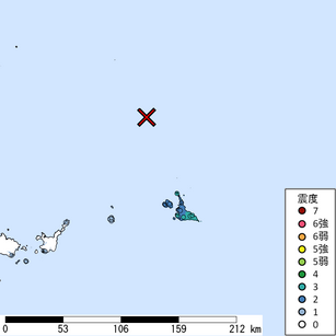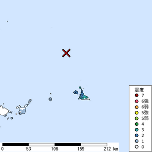 M 5.9 震源地:宮古島北西沖 2026/03/02 19:39頃発生 最大計測震度2.8 WMS:https://www.j-...