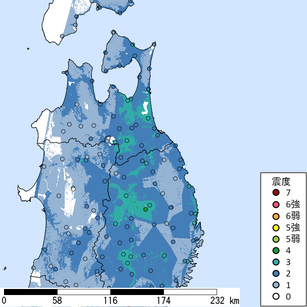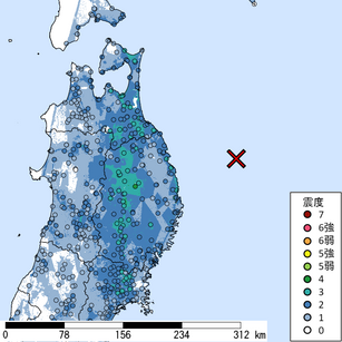 M 5.7 震源地:岩手県沖 2025/12/31 23:27頃発生 最大計測震度3.9 WMS:http://www.j-ris...
